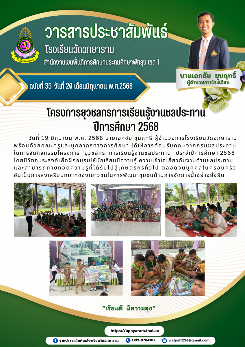 โครงการยุวชลกรการเรียนรู้งานชลประทาน ปีการศึกษา 2568